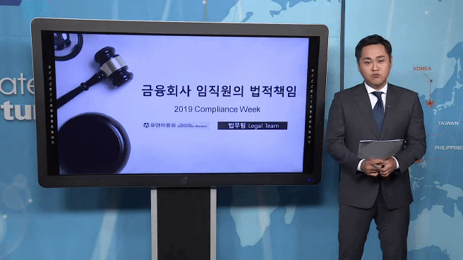 법무법인 창천의 노기완 변호사(사법연수원 40기)가 최근 유안타증권 2019 COMPLIANCE WEEK를 맞이하여 ‘금융회사 임직원의 법적책임’에 관하여 현업 종사자를 위하여 강의를 하였습니다.
